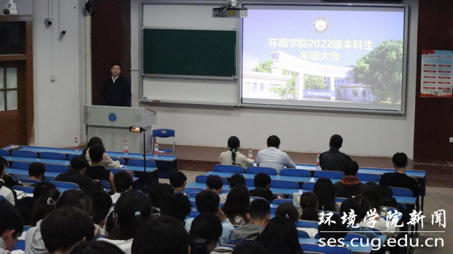 (通讯员段翔、徐溪清 摄影徐溪清 编辑耿婧)为切实加强2022级本科生教育管理工作,弘扬践行“严在地大”校风学风,提高学生安全意识,做好“五一”假期安全教育提醒。4月26日,beat365官网在南望山校区教一楼101召开2022级本科生年级大会。学校安全保卫部彭红进老师,魏景明老师,学校反诈宣讲员、地理与信息工程学院2022级本科生何敏君,学院2022级本科生辅导员王碧以及全体2022级本科生参加大会。