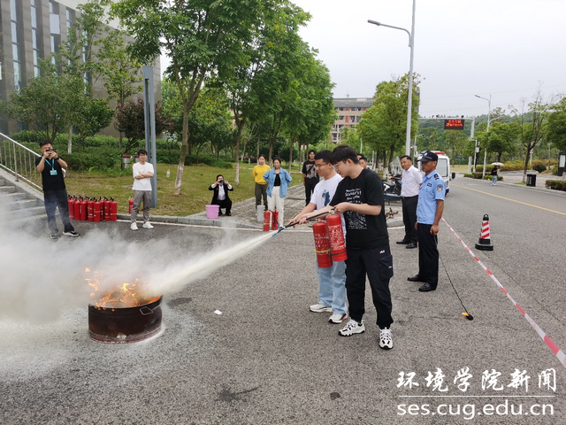 实操演练环节中,袁哲紧密联系了曾鸿所讲的理论和火情现场的实际情况,分别对干粉灭火器、二氧化碳灭火器以及消防水管的构造和功能进行了详细讲解,并传授了灭火器实际操作的要领和技巧。最后,参与培训的师生都进行了实操和演练。