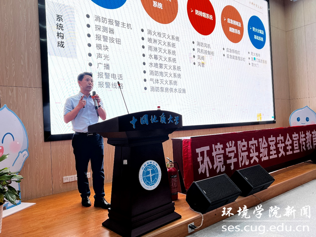 曾鸿对新校区内现有的各种消防设施与器材及其使用方法进行了详细的介绍,对火灾的制灾机理和发生在校内外的火灾案例进行了梳理分析,最后总结了各类火灾的发生原因并讲解了紧急逃生的技巧和有效灭火的方法。