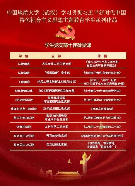 在学校复赛环节,“张国旗班”党支部和水文专业大学生党支部报送的案例和微党课入选大赛学生党支部十佳案例和十佳微党课,“张国旗班”党支部和环境水文地质导学团队党支部报送的党员好故事入选大赛学生党支部十大党员好故事。
