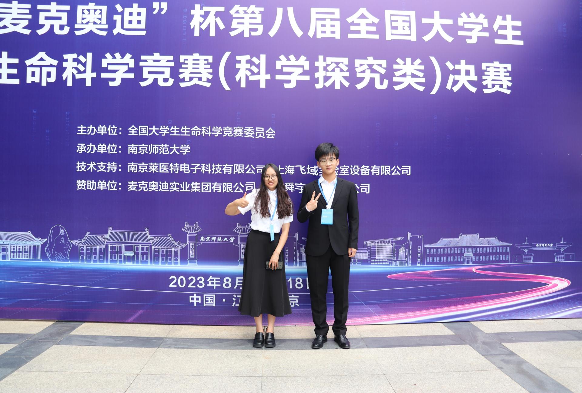 (通讯录/摄影罗茂春 编辑耿婧)8月18日,全国大学生生命科学竞赛(2023,科学探究类)全国总决赛在南京师范大学圆满落幕。在beat365官网鲁小璐副教授的指导下,生物科学(菁英班)学生罗茂春、岳彦博、李可欣、王浩宇和叶彧辰共同合作的项目“水平基因转移对微生物锑抗性及其介导的辉锑矿释放的影响研究”喜获全国二等奖。