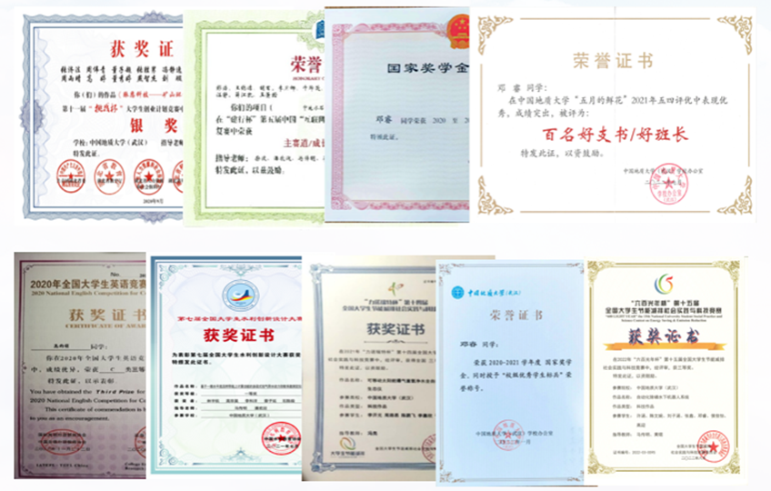 beat365中文官方网站环境工程专业大学生党支部全体党员同志在各方面都有取得不错的成绩,在个人荣誉类上成果斐然,支部党员在互联网+大赛、节能减排大赛、节能减排大赛等专业学科赛事中获国家级奖项10余项,省部级20余项,其中,许涵同志获第八届中国国际互联网+大赛全国银奖,湖北省金奖;支部党员荣获国家级、社会类奖学金20余项,荣获院校“优秀个人”、“优秀共产党员”称号30余项。2021-2023三学年,支部成员获得国家奖学金共11人次,获得国家励志奖学金共7人次,其中2023年,国奖3人,国励2人;在2022-2023学年五四评优中,支部成员累计获得百好支书,优秀团干,优秀团员等称号9项,在中国地质大学(武汉)2023届本科先进毕业班、优秀毕业生评选中,支部成员获得优秀毕业生累计9名。支部2020级成员保研率近70%。