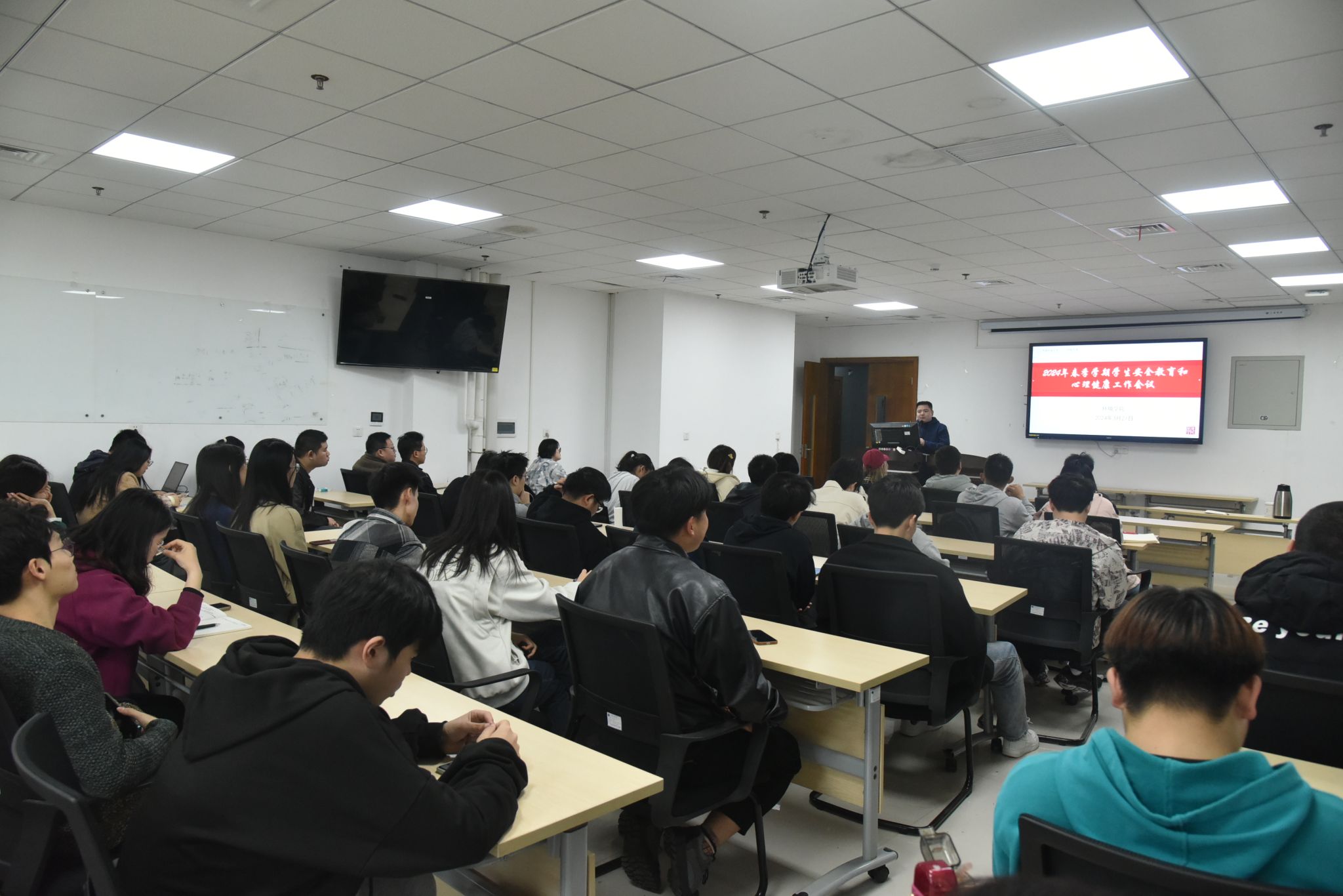 (通讯员陈俊男 摄影/编辑耿婧)3月21日中午,学院2024年春季学期学生安全教育和心理健康工作会议在学院347报告厅举行。未来城校区保卫综合办公室主任张献文、副主任邱鑫,心理健康教育中心教师杨琴,学院辅导员陈俊男、赵恩民,全体本研学生安全委员、心理委员参加会议。陈俊男主持会议。
