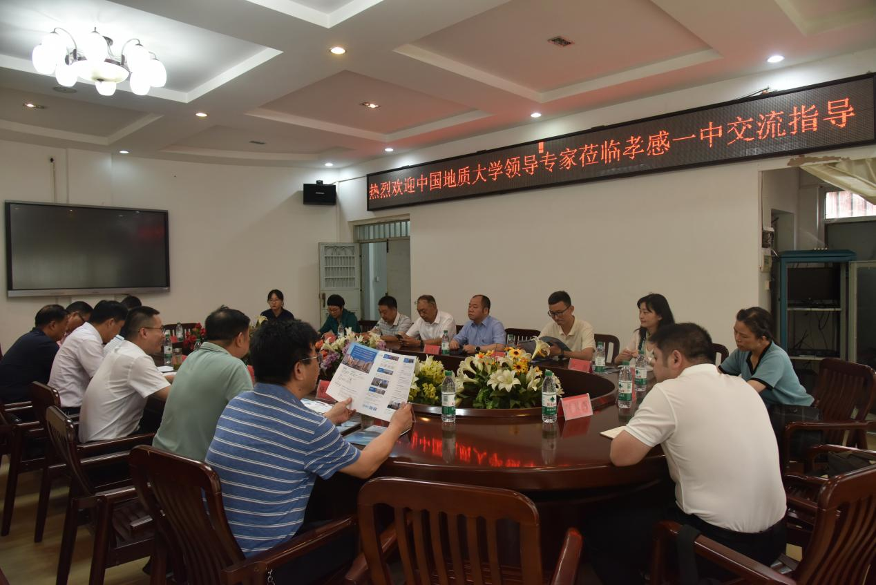 座谈会上,巫阳朔介绍了孝感一中的基本情况,随后介绍了孝感市孝南区的历史沿革、行政区划、地理环境、自然资源等方面的情况,以及在交通运输、经济产业、教育事业、文化特色和地方特产等方面的进步和发展。李义喜介绍了孝感市中小学整体的办学情况,包括师资力量、办学质量和学生规模等方面,他提到,孝感市开设学习中心课堂等先进的教学模式,积极提高基础教育水平。梅建辉介绍孝感一中的基本办学情况以及近年来在学生培养过程中取得了成绩,他提到,孝感一中注重开展素质教育,积极组织社会实践活动,培养德智体美劳全面发展的学生,自建校以来,培养了一大批优秀学生,未来希望能为中国地质大学继续输送优质生源。
