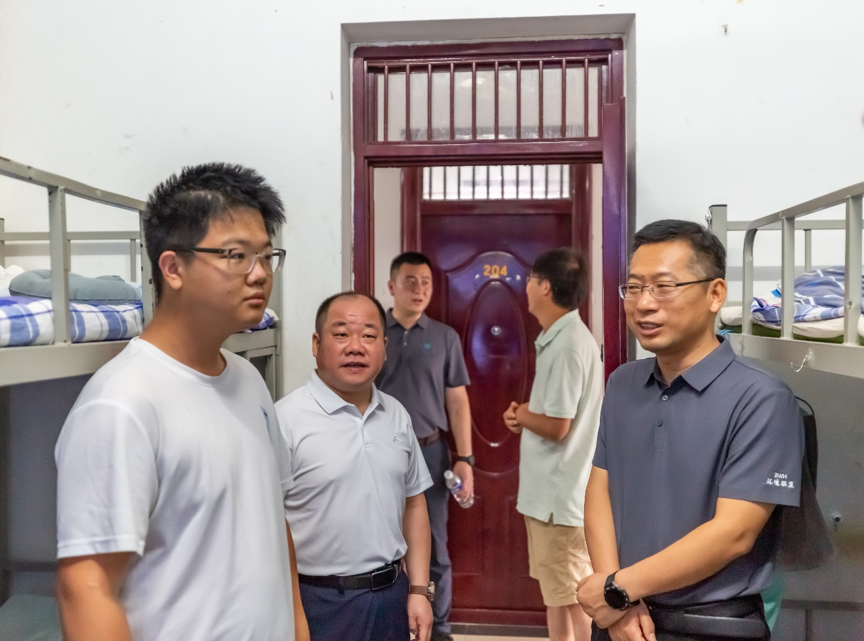 随后,学院领导一行前往宿舍看望实习学生。他们与同学们亲切交谈,关心了解同学们实习生活情况,交流实习体会感悟,他叮嘱同学们一定要注意人身安全,做好防暑降温,并勉励同学们认真学习、克服困难,掌握扎实的专业本领,并为师生送去定制地质书包、西瓜等慰问品。