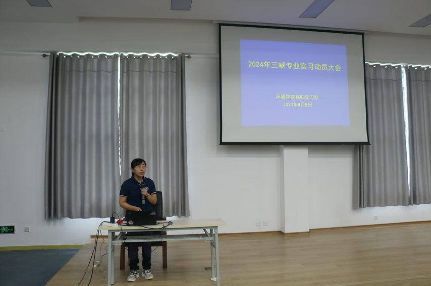李小倩老师介绍三峡秭归实习基本要求。她从实习目的、实习任务、实习准备与注意事项等方面,介绍本次实习基本情况及管理制度。