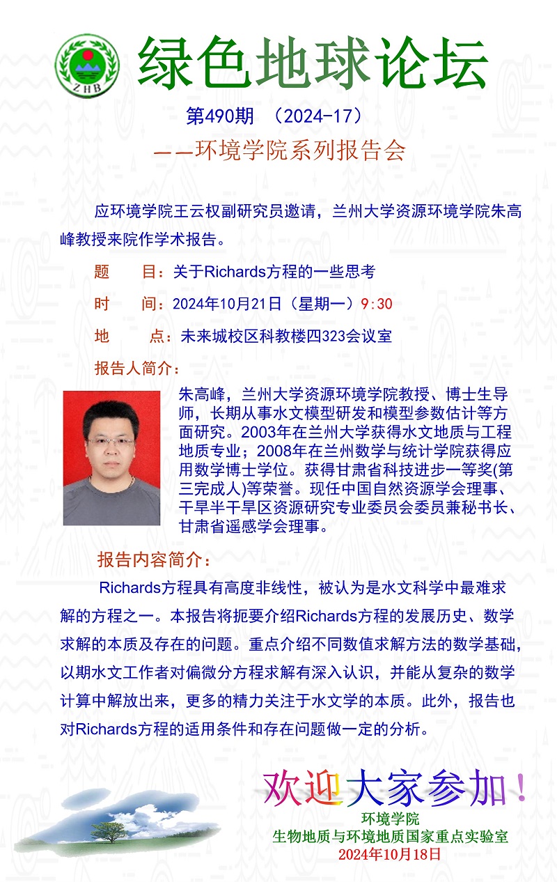兰州大学资源beat365中文官方网站朱高峰教授学术报告