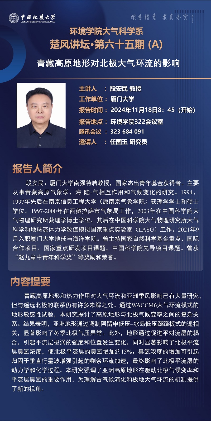厦门大学段安民教授学术报告