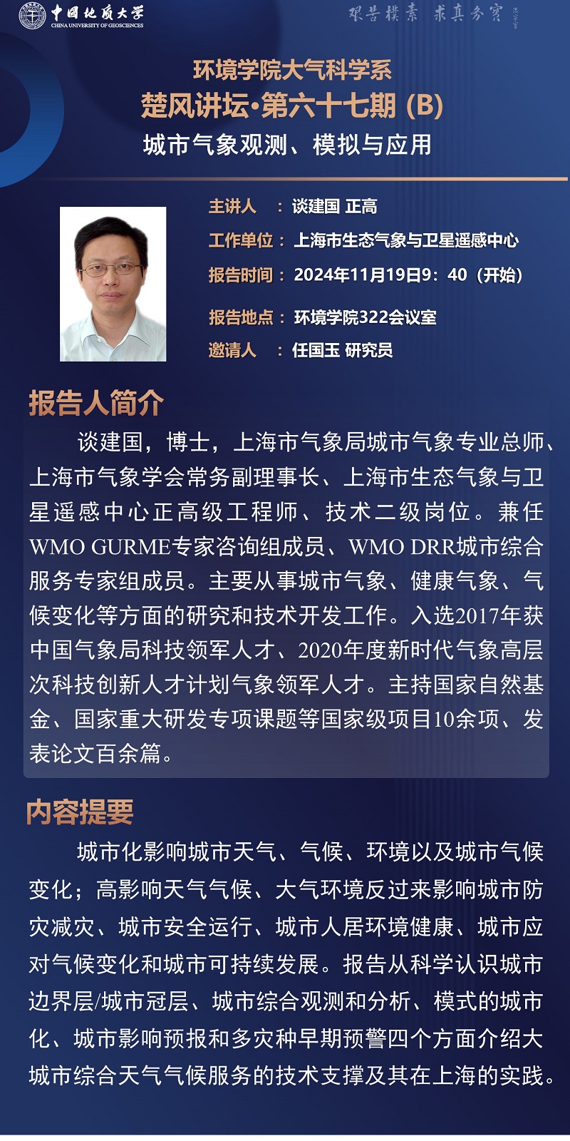 上海市生态气象与卫星遥感中心谈建国正高级工程师学术报告
