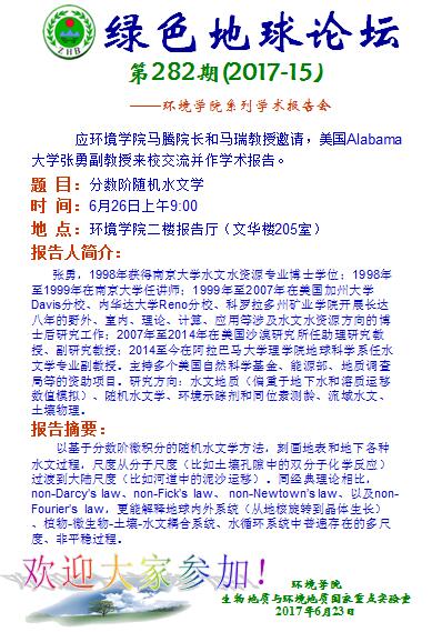 绿色地球论坛第281期(2017-14) ——beat365中文官方网站系列学术报告会
