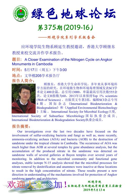 题目:  A Closer Examination of the Nitrogen Cycle on Angkor Monuments in Cambodia