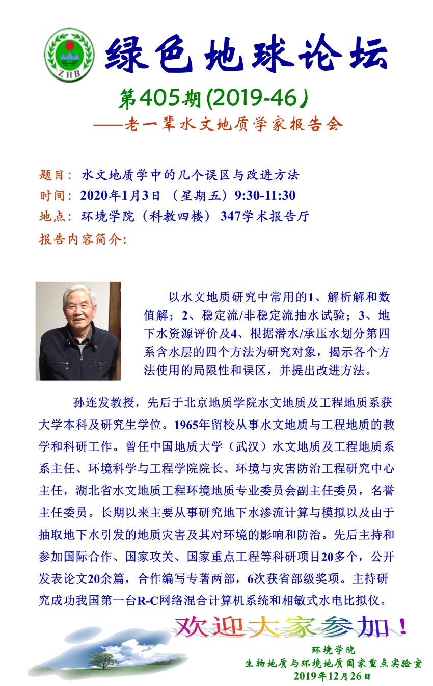 老一辈水文地质学家孙连发教授报告会