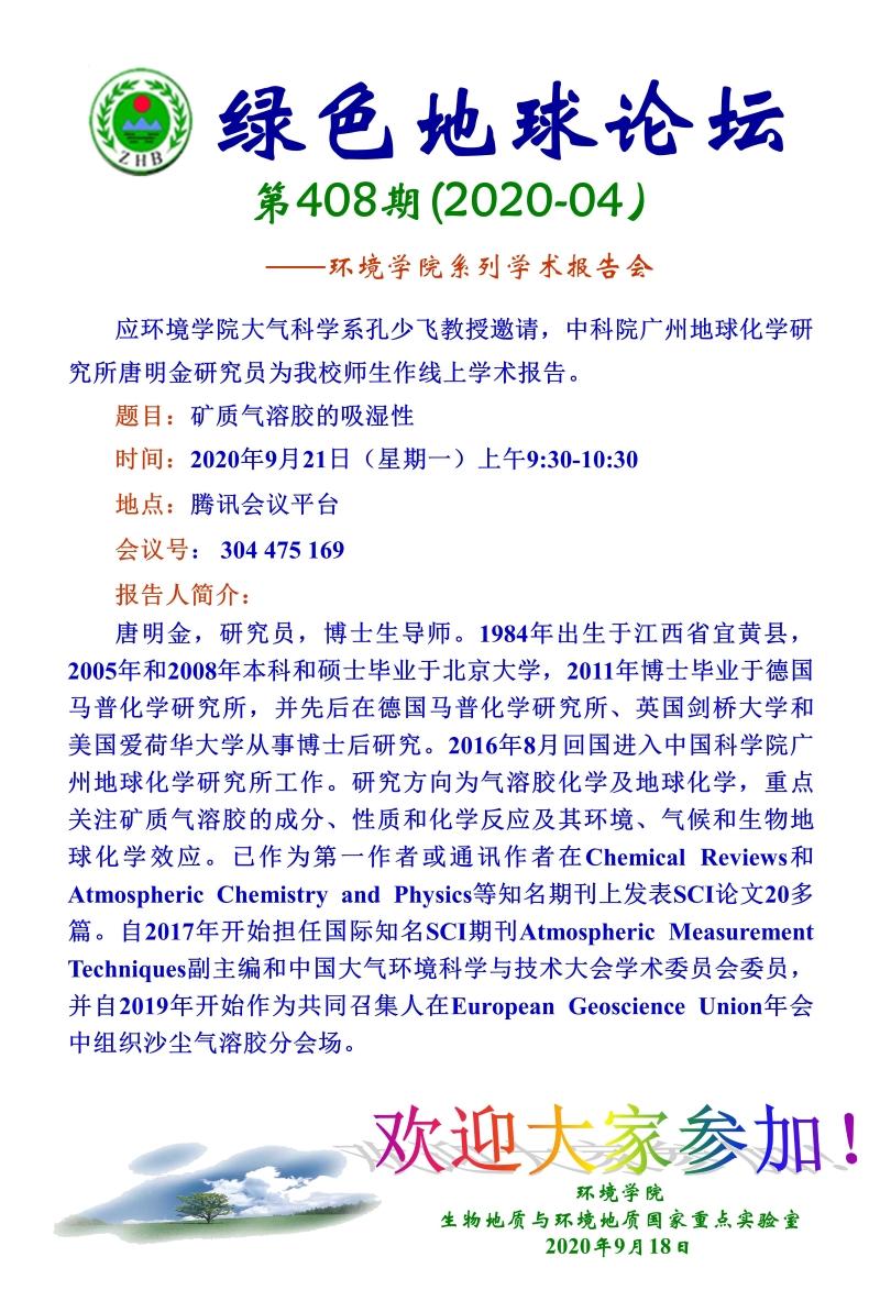 中科院广州地球化学研究所唐明金研究员学术报告