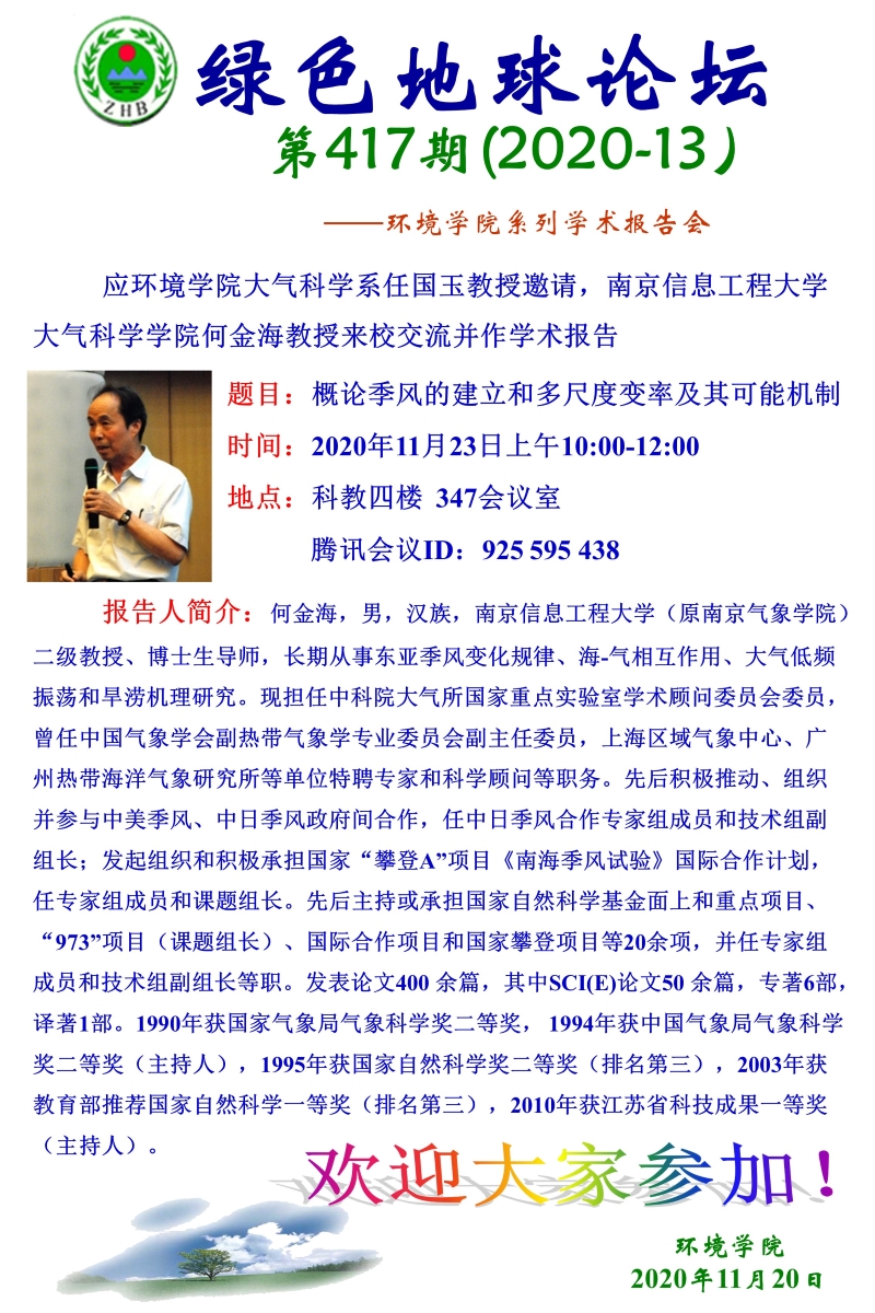 北京大学物理学院大气科学系钱维宏教授学术报告