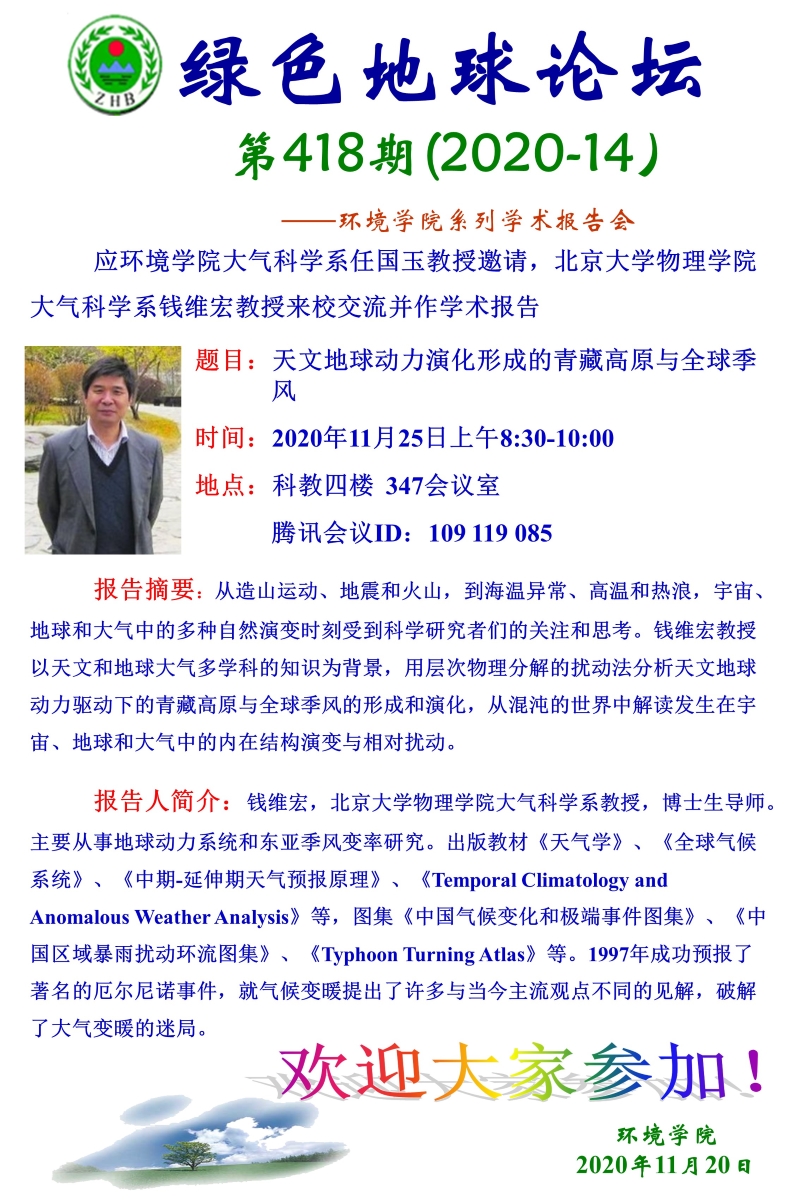 北京大学物理学院大气科学系钱维宏教授学术报告
