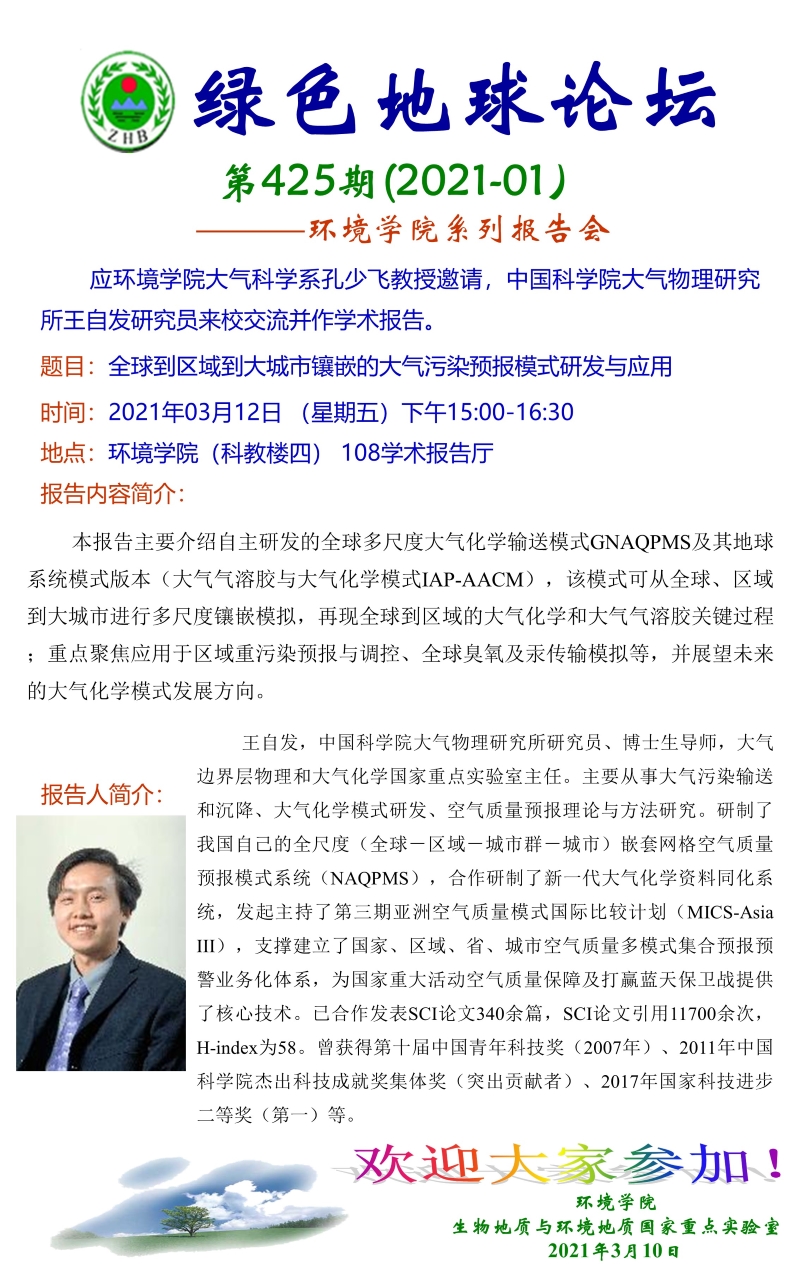 中国科学院大气物理研究所王自发研究员学术报告