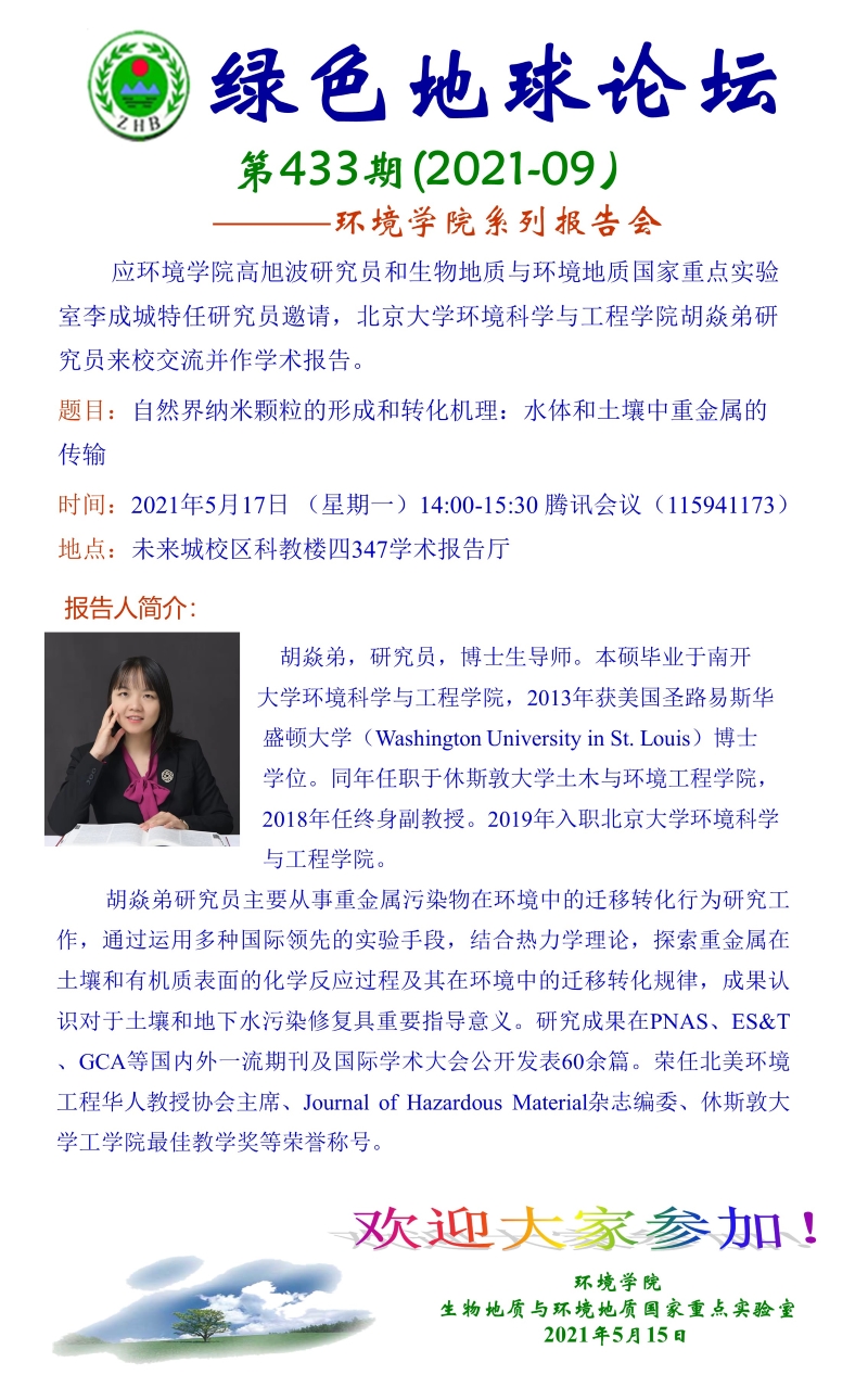北京大学环境科学与工程学院胡焱弟研究员学术报告