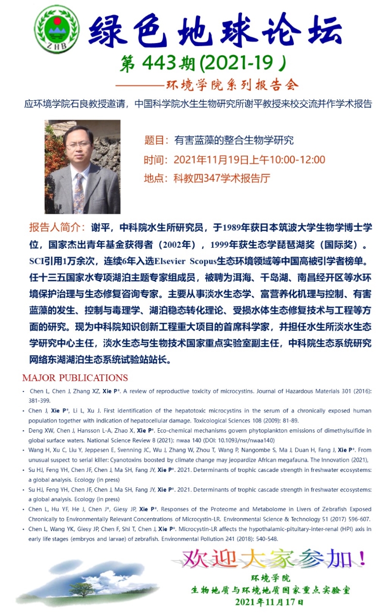 中国科学院水生生物研究所谢平教授作学术报告