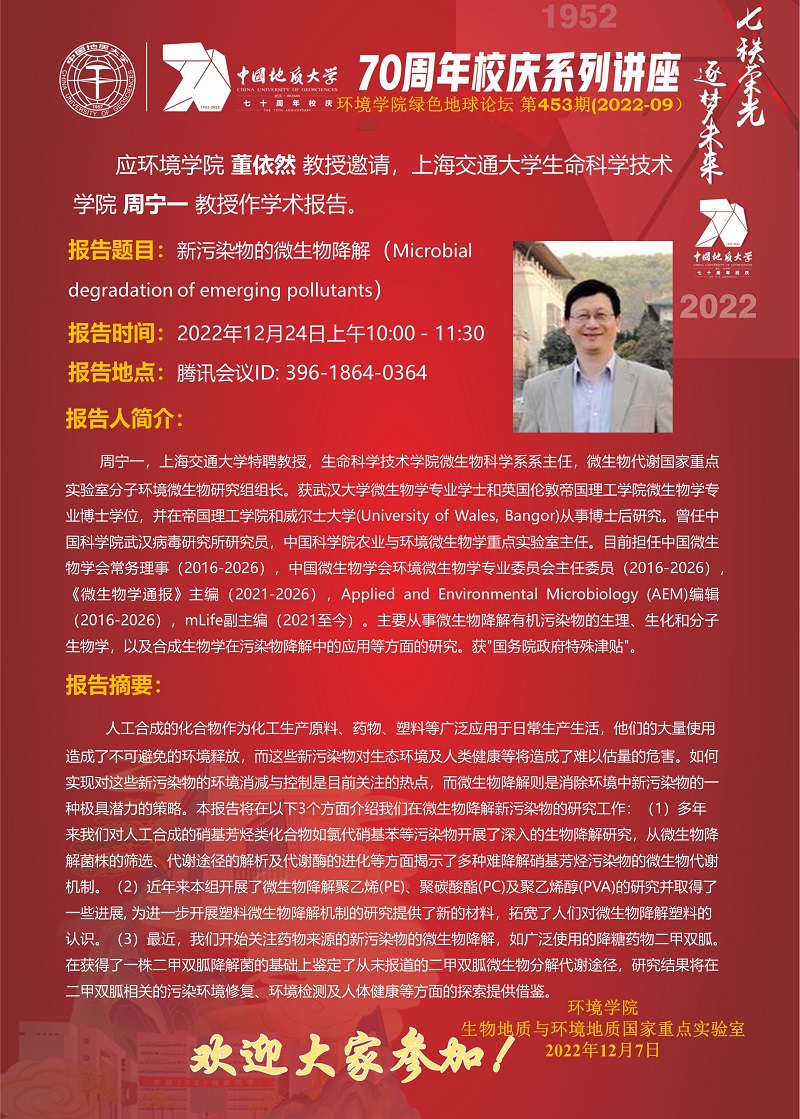 上海交通大学生命科学技术学院周宁一教授做客“知名学者学术讲座”