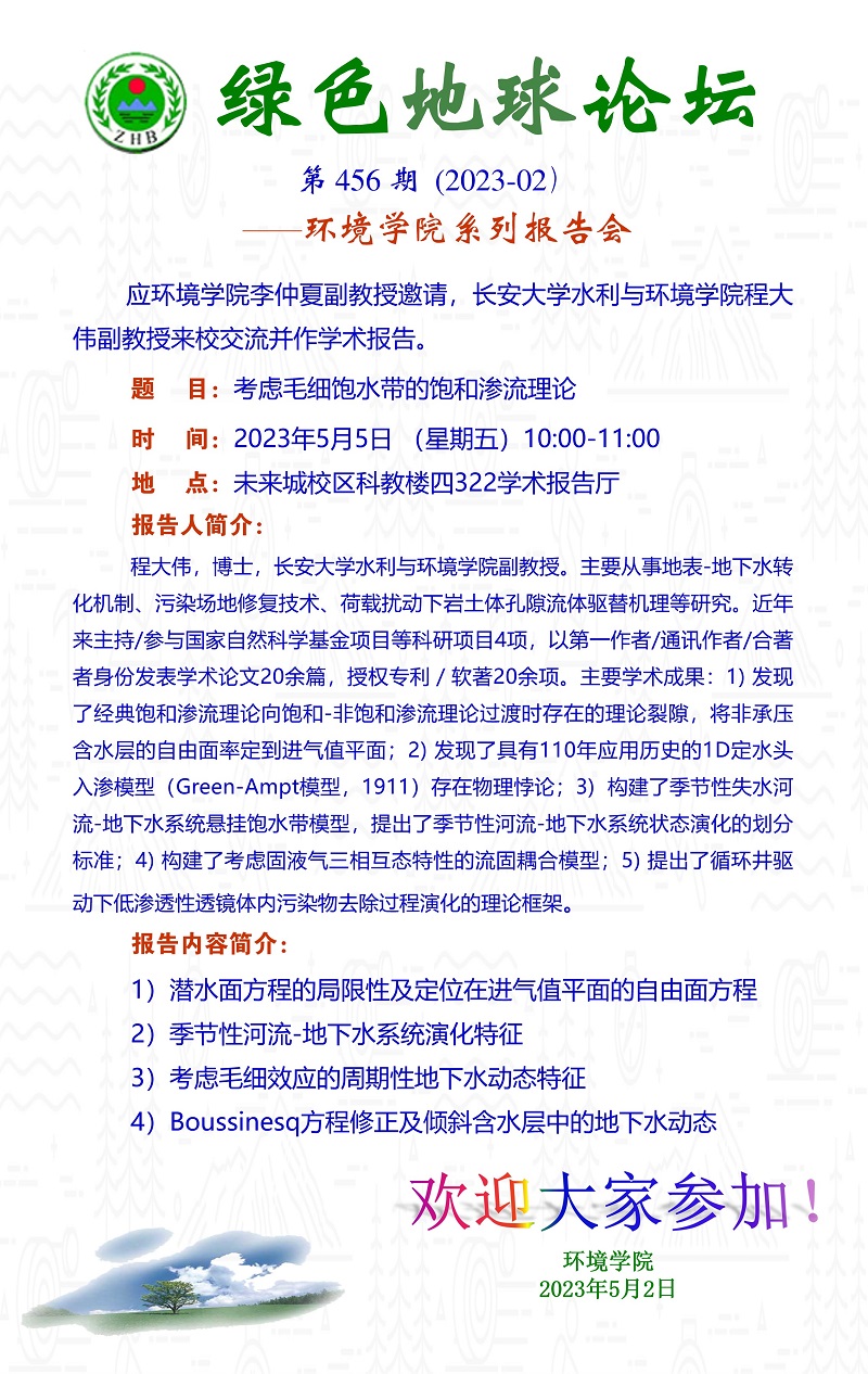 长安大学水利与beat365中文官方网站程大伟副教授学术报告