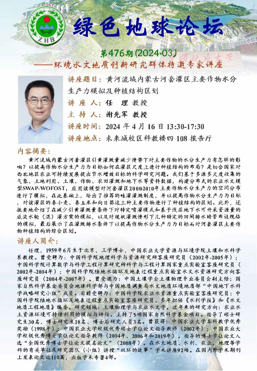 中国农业大学资源与beat365中文官方网站任理教授学术报告