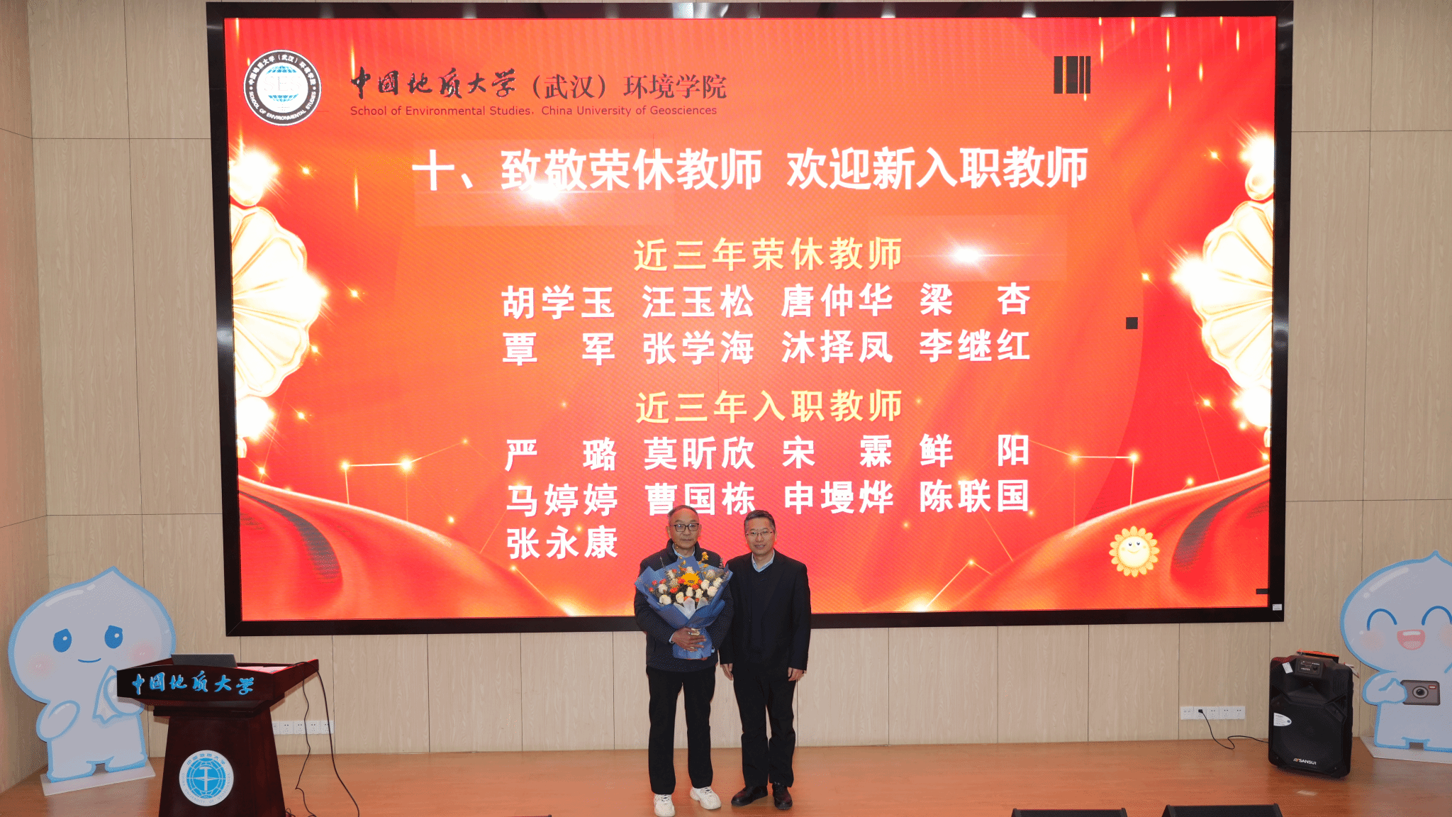 大会向学院荣休教师代表献花。