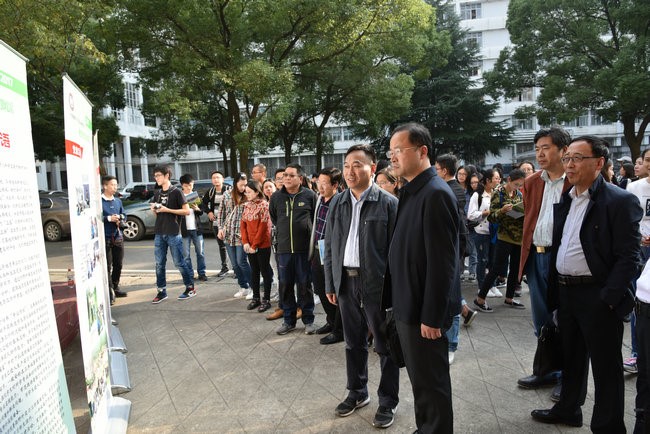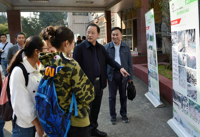 (张学海 /文/图)10月27日下午在文华楼前,beat365中文官方网站2017年师生野外实习风采展开幕。校党委书记何光彩参观师生野外实习风采展。