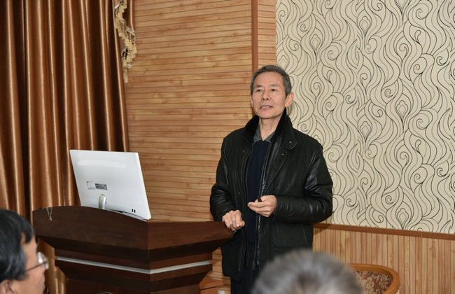 童金南在学院“校庆65周年学术交流月”开幕式上讲话。