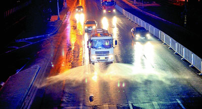 为加强地下水资源保护,北京市市政道路使用再生水。(新华社发)