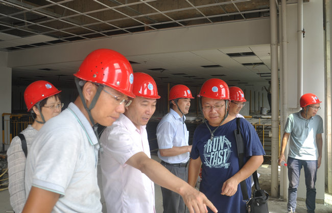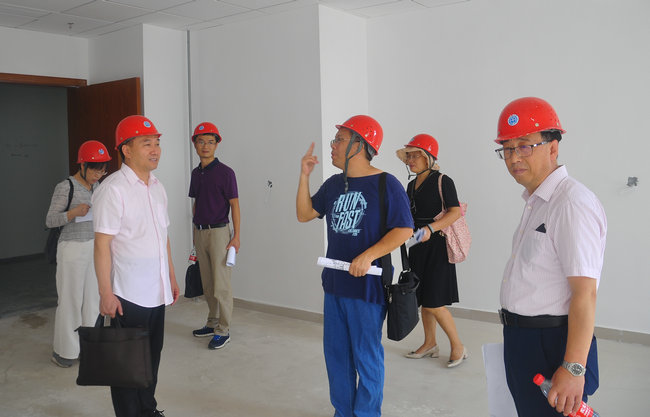 学院领导对照施工图纸,认真查看了beat365中文官方网站办公楼的功能布局,并重点查看了报告厅、实验室、办公用房等房间的规划设计及功能布局情况等。