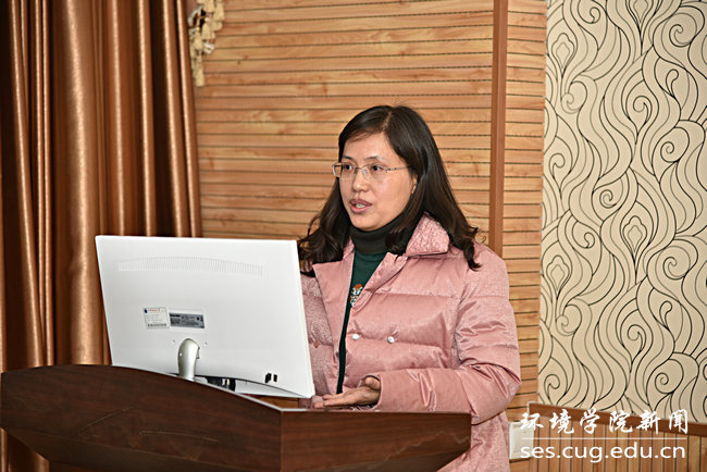 郭会荣代表水文地质学基础课程组作“强化课程建设,提高人才培养质量”的专题汇报,从课程沿革、教学特色、实验教学、教材建设、在线课程、教学改革、团队建设等方面阐述了水文地质学基础课程的发展和建设。