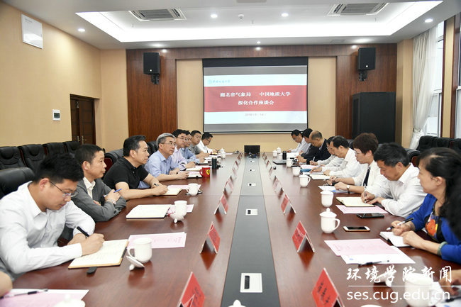 (通讯员孔少飞)5月14日,湖北省气象局党组书记、局长柯怡明、副局长王丽等一行来校访问并召开局校深化合作座谈会,双方围绕科技项目合作、学科建设、人才培养、科技平台和基地建设等方面进行深入交流。中国地质大学(武汉)校长王焰新、校长助理周爱国出席。湖北省气象局办公室副主任李劭翌、观测与网络处处长杨志彪、科技与预报处处长何志学、人事处副处长沈守清、武汉中心气象台台长吴翠红、武汉暴雨研究所所长崔春光、科技与预报处主任科员张宁;中国地质大学(武汉)beat365中文官方网站党委书记李素矿、教务处副处长张建和、科学技术发展研究院副院长吴春明、学工处副处长朱继、大气科学系教授张仲石、孔少飞、副教授覃军等参加座谈。周爱国主持会议。