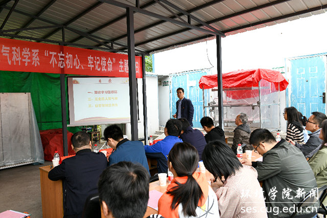 参会领导交流指导。校党委组织部副部长冷再心指出,此次主题党日活动在一线实验室开展,很好地体现了主题教育活动的一线规则;大气科学系党支部的师生团队守初心、担使命,奋斗在一线、奉献为军运,是“不忘初心、牢记使命”主题教育的生动实例,体现了地大师生的责任与担当。学校主题教育第二指导组副组长朱丹谈到,为大气科学系党支部教工党员在三全育人、服务军运等方面主动作为、无私奉献的精神感动;大气科学系教工党员传承了地大老一辈科学家身上的精气神,希望大气系成为具有深厚底蕴的特色专业。大气科学系主任李双林教授说,大气科学系虽然是新成立的年轻的系,但教风学风非常好,青年教工党员讲奉献、讲团结,教学科研齐努力,立德树人展作为,一定会不负众望。