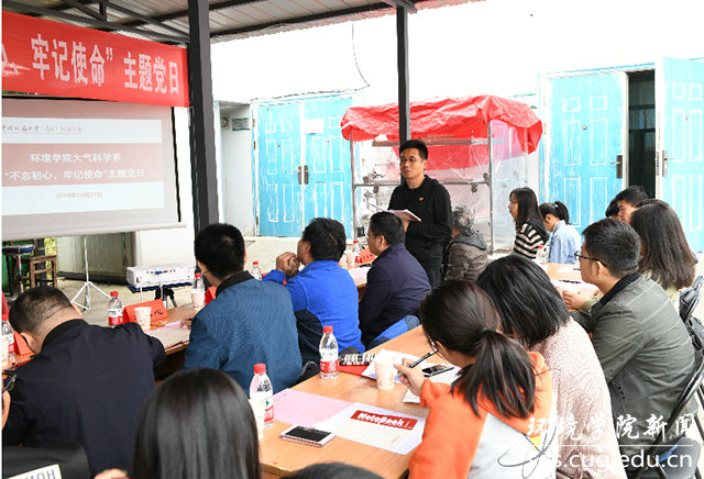 (通讯员孔少飞  编辑张学海)2019年10月26日上午,beat365中文官方网站大气科学系党支部在南望山校区军运会空气质量监测和保障服务实验室,开展“不忘初心、牢记使命”主题党日活动。校党委常委、副校长刘杰,党委组织部副部长冷再心、学校主题教育第二指导组副组长朱丹,学院党委书记李素矿,党委副书记姜明敏,大气科学系主任李双林,大气科学系教工党员,大气科学系2019级新生代表,源排放与区域大气环境团队研究生等30余名师生参加。大气科学系党支部书记孔少飞教授主持主题党日活动。
