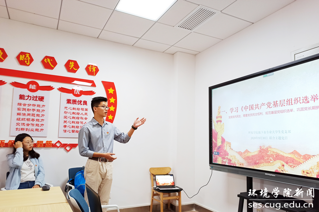 地下水专业大学生党支部的贺沁文同志领学《中国共产党基层组织选举条例》和《中国共产党章程》。他带领大家强化学习《条例》,使党员同志明确做好新时代基层党组织选举工作的重要作用和基本要求;随后,他带领大家重温《党章》,使每一名党员同志进一步强化自身的权利与义务,铭记肩上担当,做合格党员。