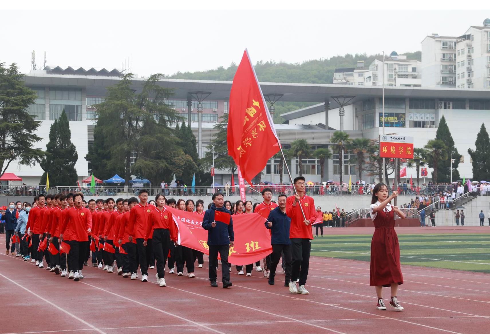 永葆赤子情怀,争做时代先锋!看,beat365中文官方网站师生精神抖擞,听,“青山绿水、环境最美…”激昂的口号声,2400余名环境师生以美丽中国·宜居地球建设为己任,发扬团结、协作、奉献、卓越的学院精神,把个人理想融入到“中国梦的伟大实践,融入到“地大梦“环境梦的具体行动,积极开展体育健身运动。beat365中文官方网站方阵通过运动会主席台。