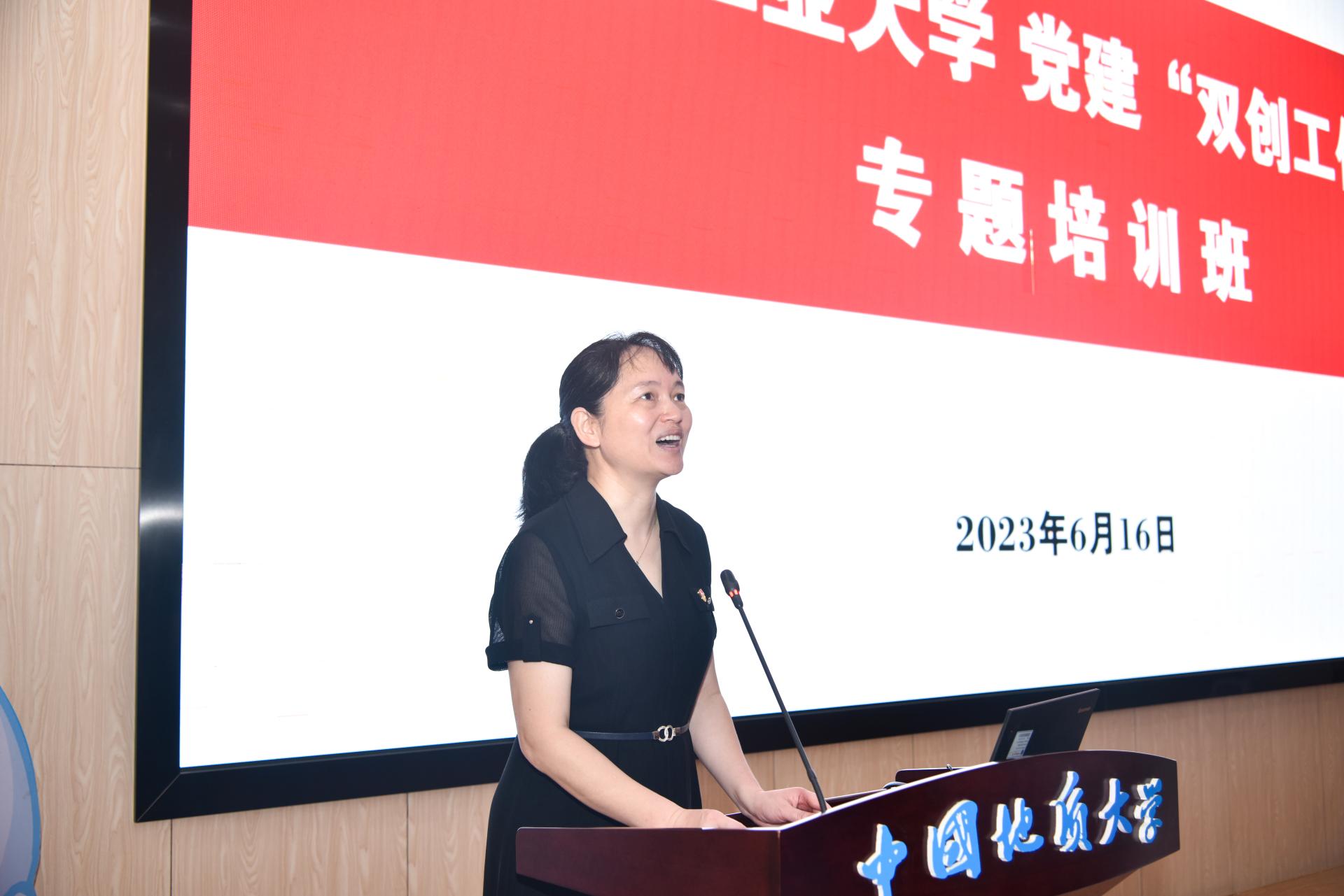 桂丽致辞。她表示,今天我们有幸借中国地质大学beat365中文官方网站的宝地接着开展学校党建“双创”工作专题培训班,beat365中文官方网站不但为我们提供现场观摩,还专门为我们布置提供了场地为我们集中辅导授课,为我们学校本次专题培训班提供了用言语无法表达的支持,在此,对beat365中文官方网站和李素矿书记表示由衷地感谢。她介绍了培训主讲人李素矿书记,指出,李素矿书记和其所在学院在党建研究、党建“双创”等方面特色明显、亮点突出、成效显著,在全国范围内都有着一定的影响力,今天我们通过互学互鉴、互联互通,共同推动党建业务双融双促双提升,在学校党建示范创建和质量创优工作取得新突破,迈上新台阶。