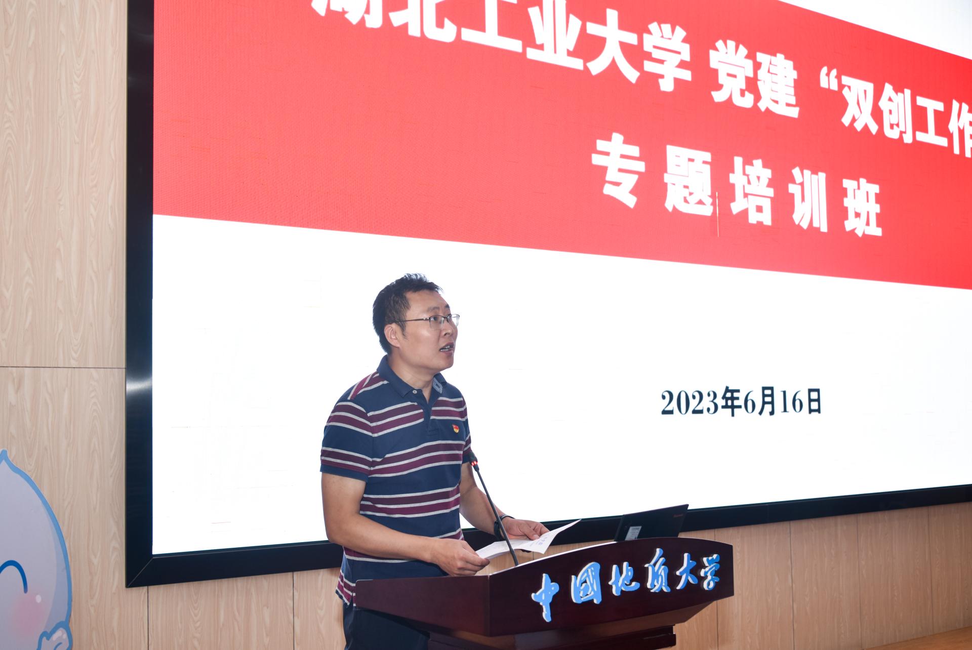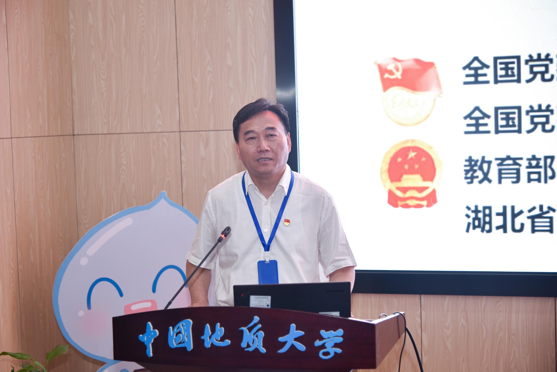 李素矿代表学院对湖北工业大学党建“双创”工作专题培训班在beat365中文官方网站设立专题考察培训环节表示欢迎和感谢。他以《高校党建“一融双高”路径与思考——以地大beat365中文官方网站党建“双创”为例》为题,从“知”“行”“悟”三个方面讲授。在“知”方面,重点解读党的二十大精神、习近平总书记关于教育重要论述、关于党建重要讲话、《中国共产党普通高等学校基层组织工作条例》、教育部党组有关“双创”政策和“一融双高”的内涵等;在“行”的方面,以学院党建“双创”为例,重点介绍了五大抓手、培育生态环保铁军的路径与举措,即谋划“红专能优”党建育人模式、实施“张国旗班”行动计划、打造“1+6”资政育人载体、建设“美丽中国”4+N课程思政、打造水-土-气-生-环跨学科育人范式等;在“悟”的方面,结合“双创”实践与成效,畅谈了实施“一融双高”的工作思路和心得体会。他说,学院党建示范创建和质量创优工作所取得的创新性理论成果、制度成果、实践成果和特色成果,是全体师生凝心聚力、干事创业、追求卓越的汗水结晶。