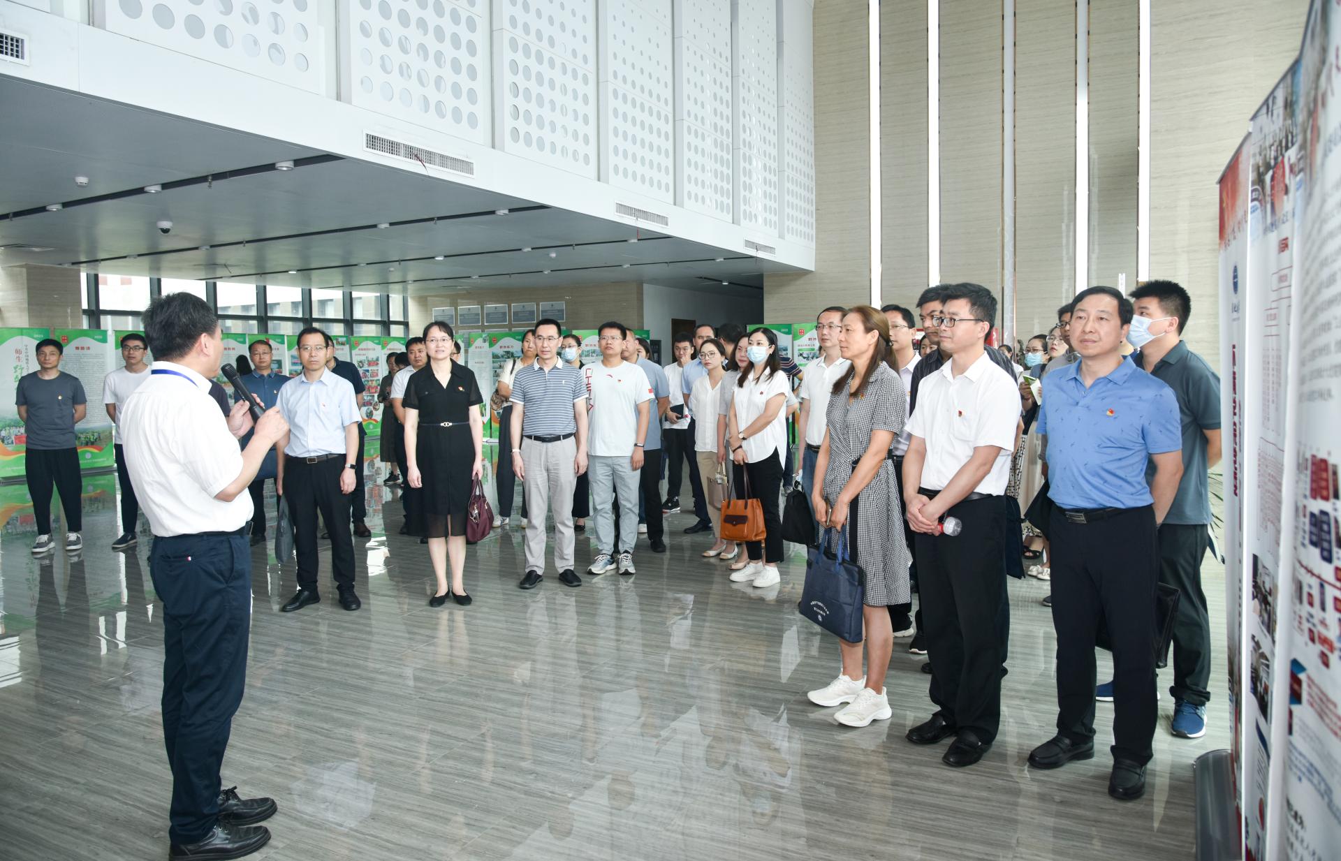 与会人员先后参观了beat365中文官方网站党建“双创”工作成果展、beat365中文官方网站18届环境科技文化节成果展和全国12个以英雄榜样人物命名的全国党建工作样板支部成果展。李素矿介绍学院基本概况、党建工作体系、三全育人改革、跨学科教育研究、张国旗班行动计划、“4+N”美丽中国课程思政、“1+6”党建资政育人载体、兄弟院校交流互鉴、领导关怀指导和社会媒体反响等十个方面双创成果。对组织开展全国以英雄榜样人物命名的全国党建工作交流会情况进行了介绍。