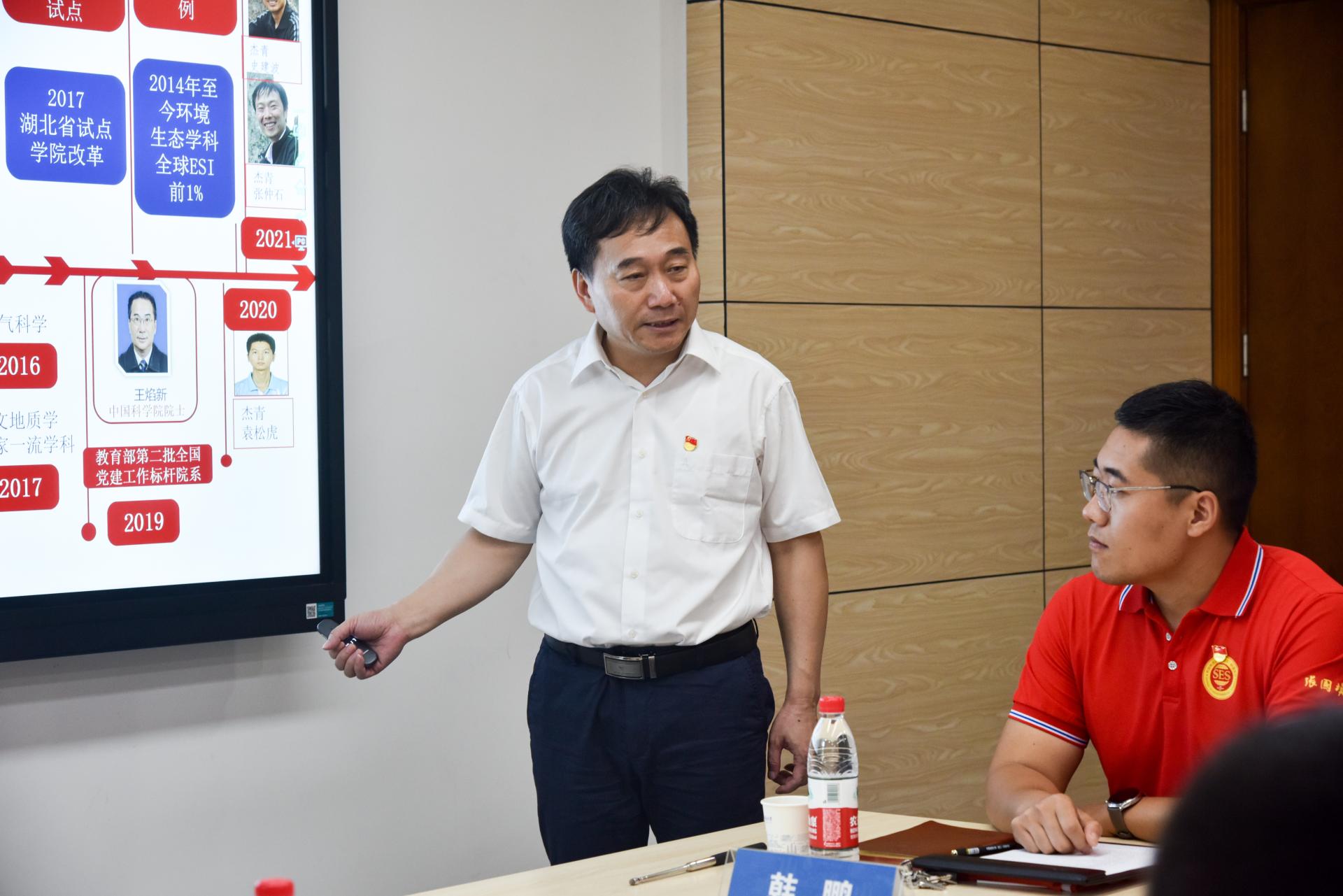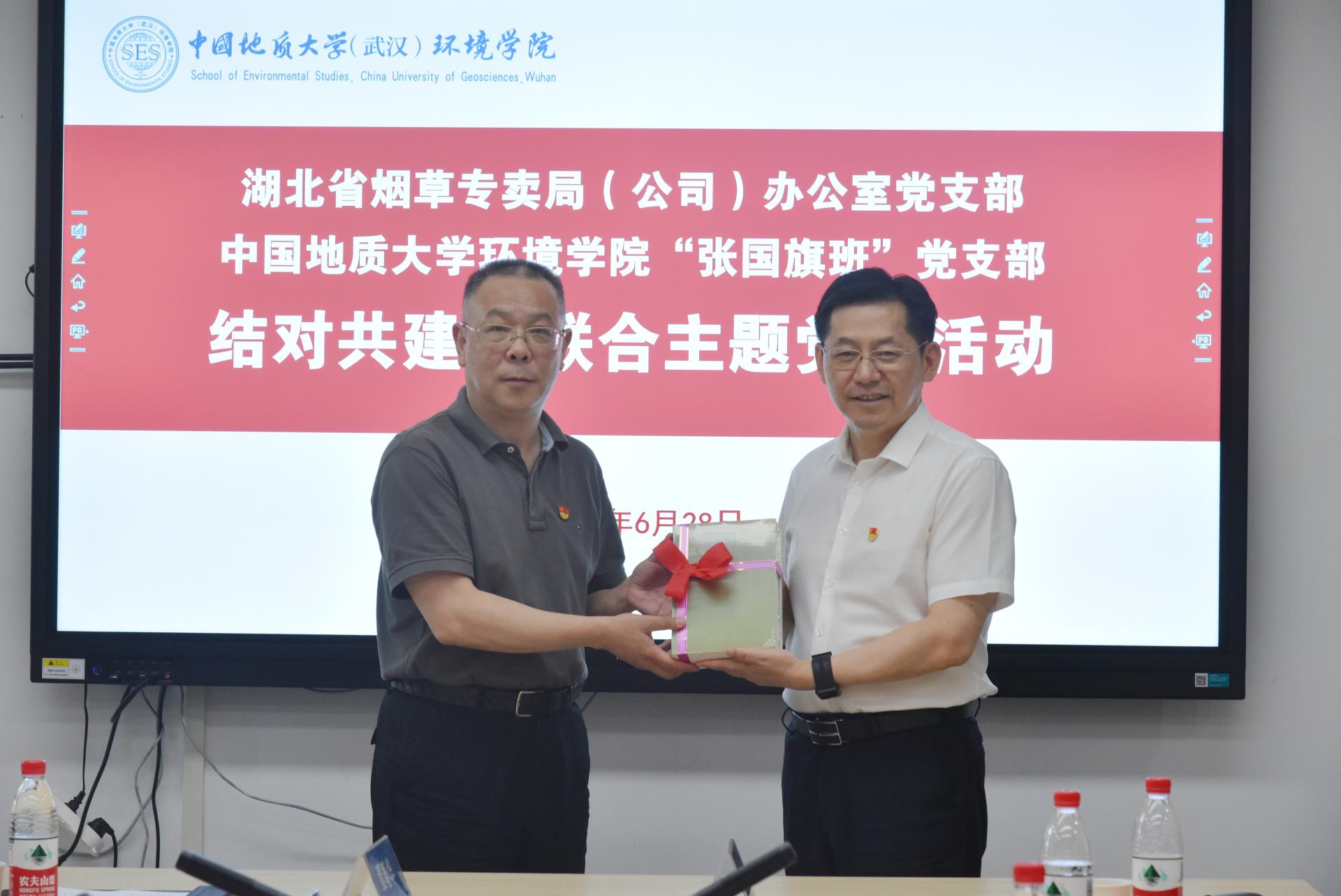 (通讯员陈俊男 摄影张学海 严丽莎 编辑严丽莎)2023年6月28日上午,在科教楼四308会议室,湖北省烟草专卖局(公司)办公室党支部与beat365官网“张国旗班”党支部开展结对共建暨联合主题党日活动。湖北省烟草专卖局(公司)党组书记、局长、总经理顾厚武,办公室支部书记、办公室副主任许名臣,组织委员、办公室副主任王百雁,纪检委员、副调研员韩李庆,宣传委员刘冠华,支部党员覃春华、肖潇、吴婕一行来beat365官网进行党建“双创”工作专题交流,并与beat365官网“张国旗班”党支部开展结对共建暨联合主题党日活动。我校党委副书记、纪委书记唐忠阳,校党委组织部副部长张建华,学院党委书记李素矿,学院党委副书记王海锋,学生党建辅导员陈俊男、“张国旗班”党支部书记韩鹏以及学生党员代表等参加本次活动。许名臣主持本次活动。